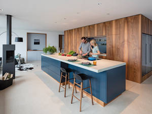Marc Herzog von Herzog Küchen AG: Für die Kommunikation innerhalb einer Familie sind grosse, fliessende Räume von Vorteil. Im Gegensatz zu den geschlossenen Küchen der Nachkriegsjahre können alle problemlos am Familienleben teilnehmen. Einer kocht, einer macht Hausaufgaben, ein anderer liest und doch verbringen alle ihre Zeit gemeinsam. Damit man sich in diesen Lebensräumen wohlfühlt, sollte die Einrichtung aufeinander abgestimmt sein. Boden, Wände und Farben sollten ein harmonisches Ganzes bilden. Für die offene Raumgestaltung ist ein durchgängiges Konzept besonders wichtig.